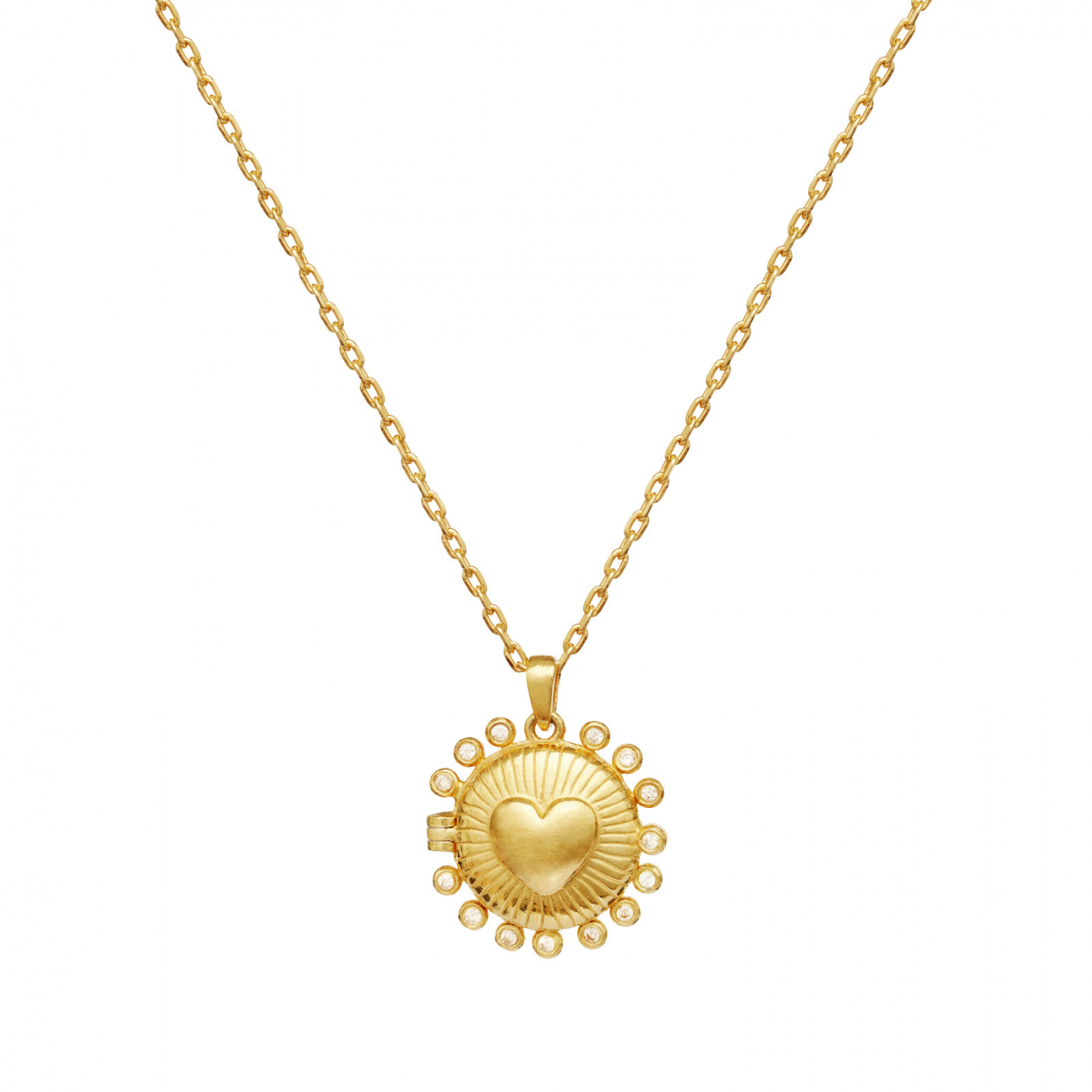 With the engraved pendant hanging just above your heart, you can always open yourself to love.