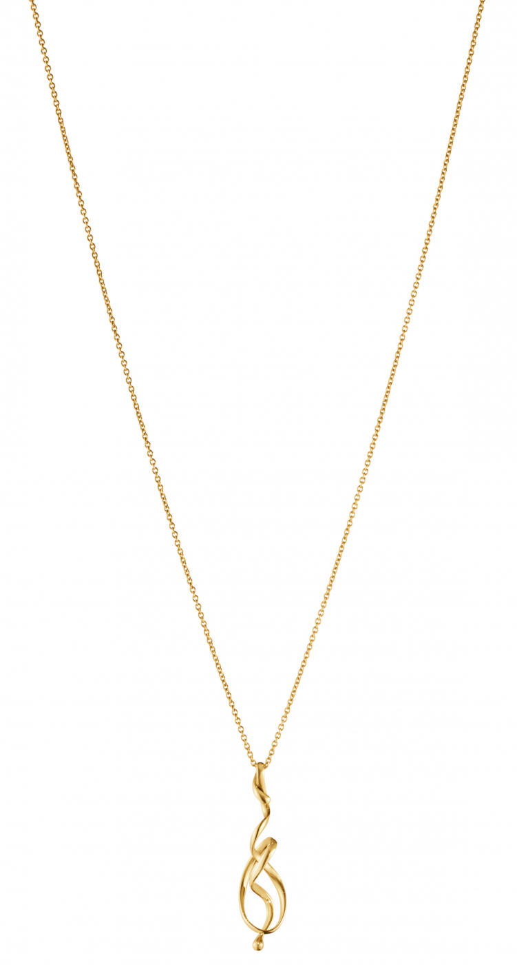 Vivianna Torun Bülow-Hübe is known for her nature-inspired design language and was the first female silversmith to open her own workshop in Sweden. Her Forget-Me-Knot pendant from 1971 is formed from a single strand of yellow gold and reflects her vision of jewelry design: simple, sculptural and naturally elegant.