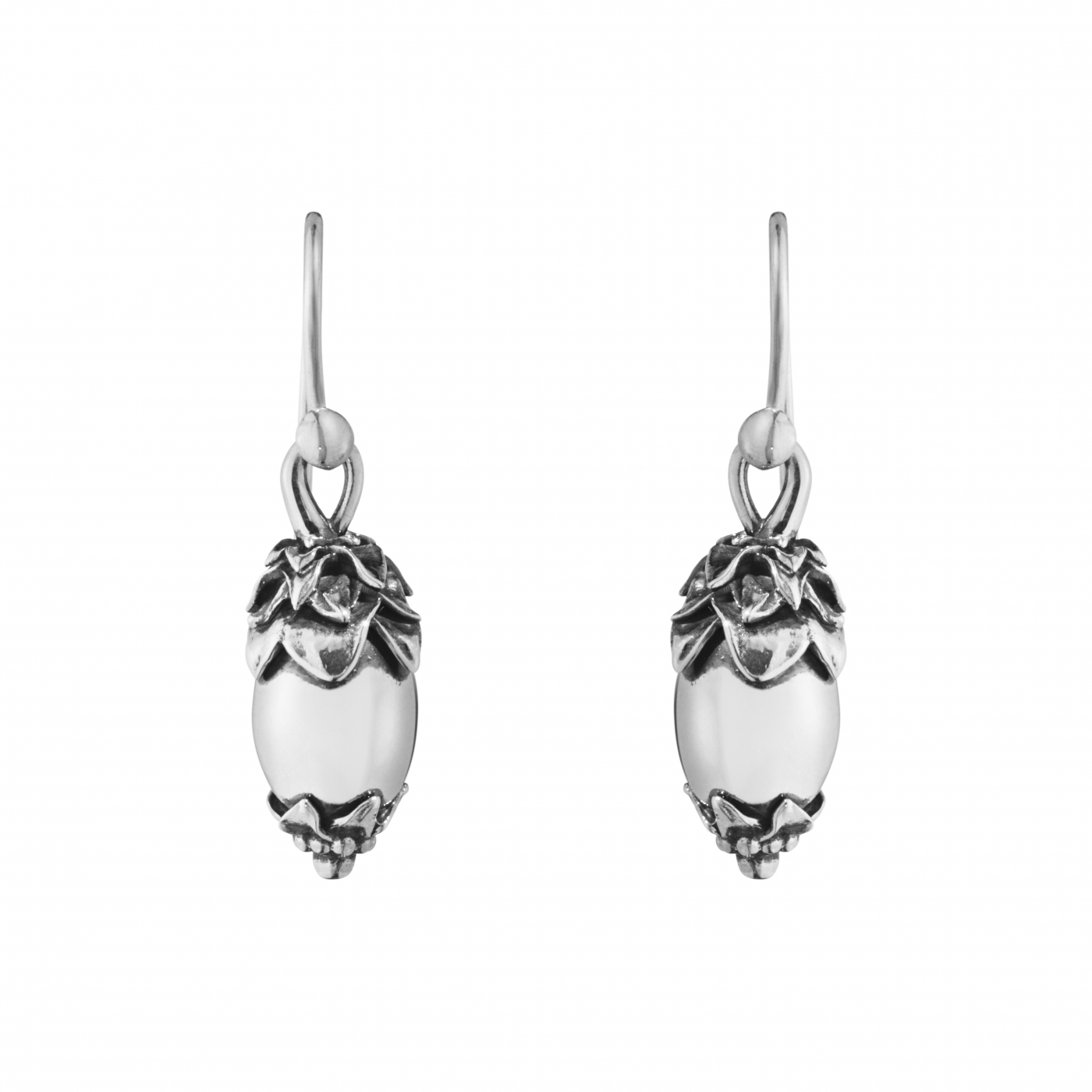 The Heritage collection expands each year with a new design that honours Georg Jensen's Art Nouveau roots. For 2026, the series celebrates nature-inspired motifs from the early 1900s. These eye-catching earrings feature intricate, pine cone–like detailing encasing a polished silver pendant. The launch year is engraved on the back of each piece, making them true collector’s items.