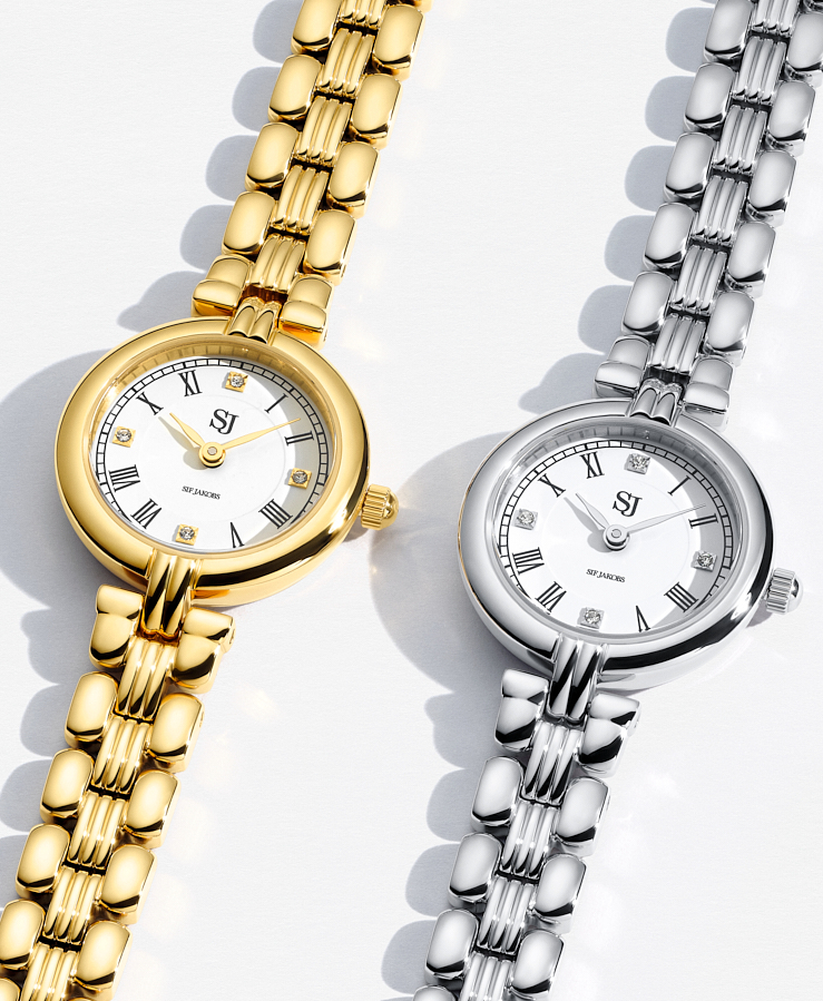 Watch made of gold plated stainless steel, polished surface with sapphire glass, and a matte white,dial.
