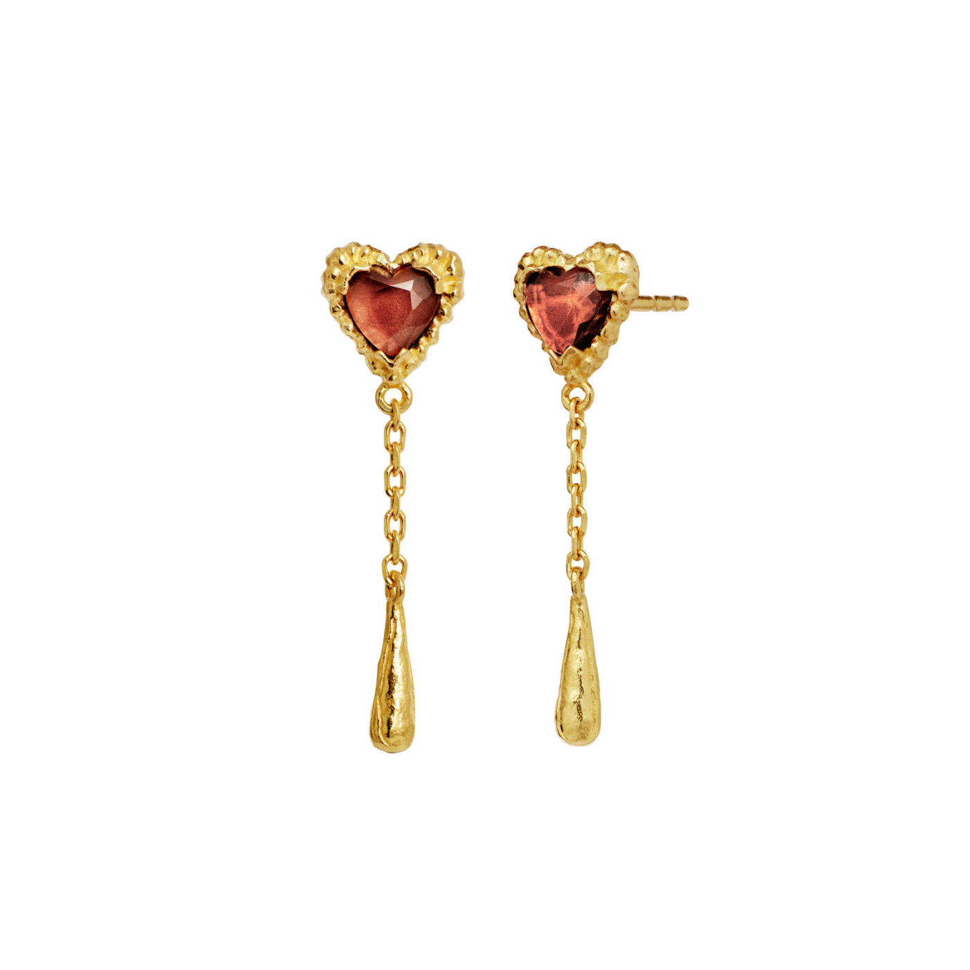 Kjærligheten strømmer fra våre Lady-øredobber, dryppende som gyldne tårer fra rosa granathjerter og symboliserer kjærlighet.