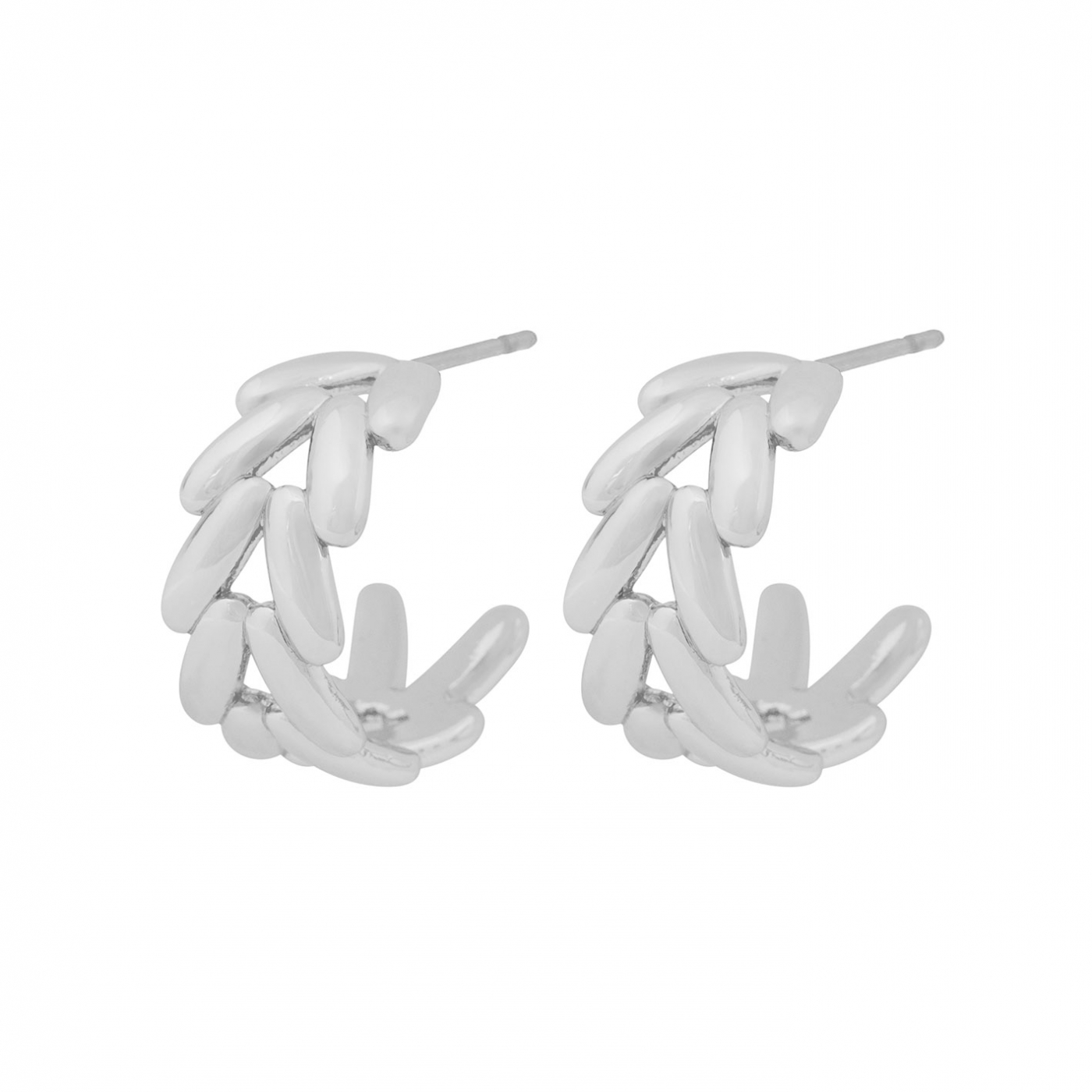 Elegant stud earrings with a half-hoop shape and a V-shaped detail. Smooth surface for a minimalist look.