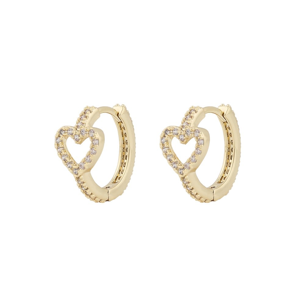 Hoop earrings with an open heart and sparkling stones. An elegant and romantic accessory.