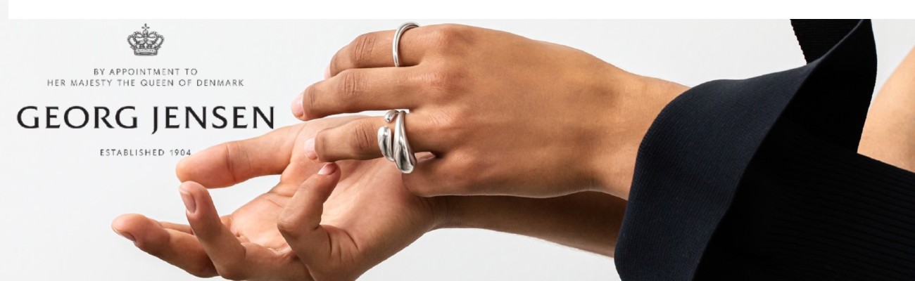 Danske Georg Jensen har et stort udvalg af ringe, halskæder og øreringe fra kollektioner som Offspring, Mercy og Moonlight Grapes.